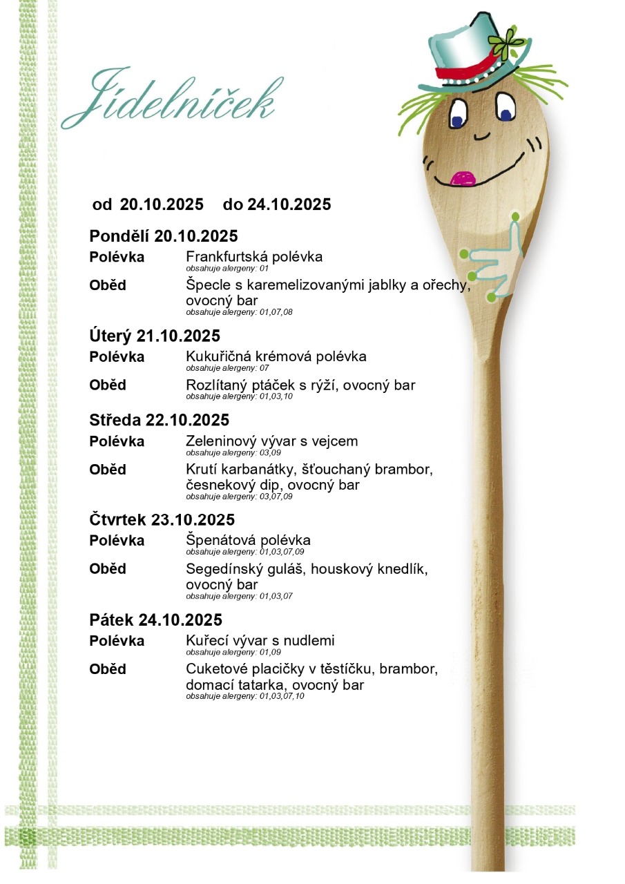 Jídelníček od 20.10.2025 - 24.10.2025